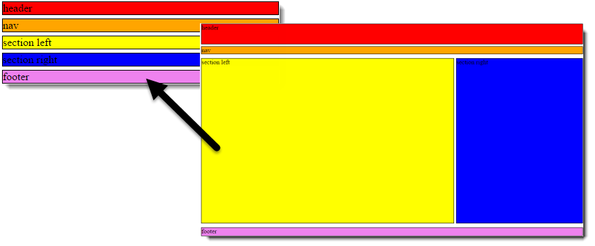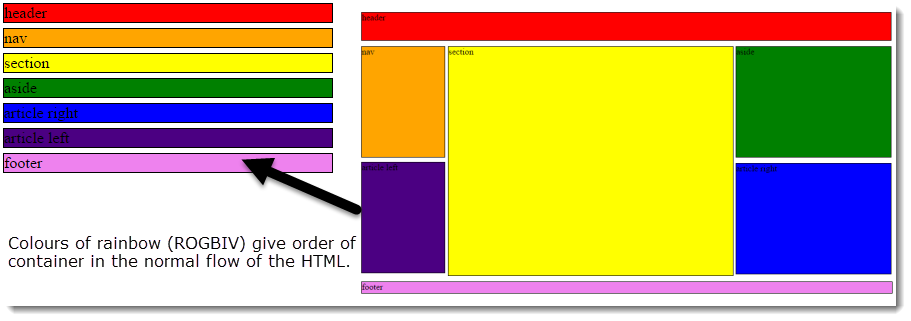 Rainbow layouts to help track the positioning of the different html elements.